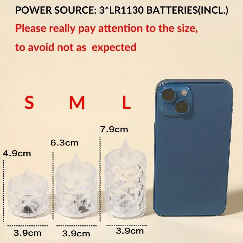 Elegant Crystal Design: Crafted with a stunning crystal-like exterior, this flameless candle light offers a chic and refined look that complements any decor. Its sparkling surface reflects light beautifully, adding a touch of glamour to your space.